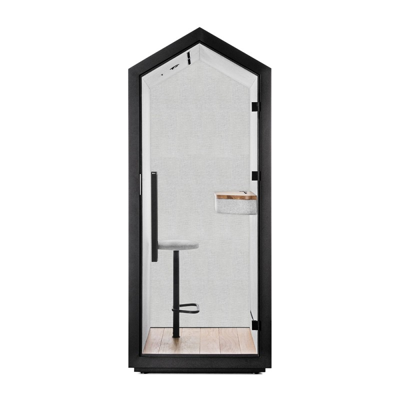 The Bejot Treehouse THS-1S-G1 is a compact, one-person acoustic booth designed to provide a private and quiet workspace within busy office environments. This model is tailored for individual use, allowing for focused tasks such as phone calls, video conferences, or uninterrupted work sessions.