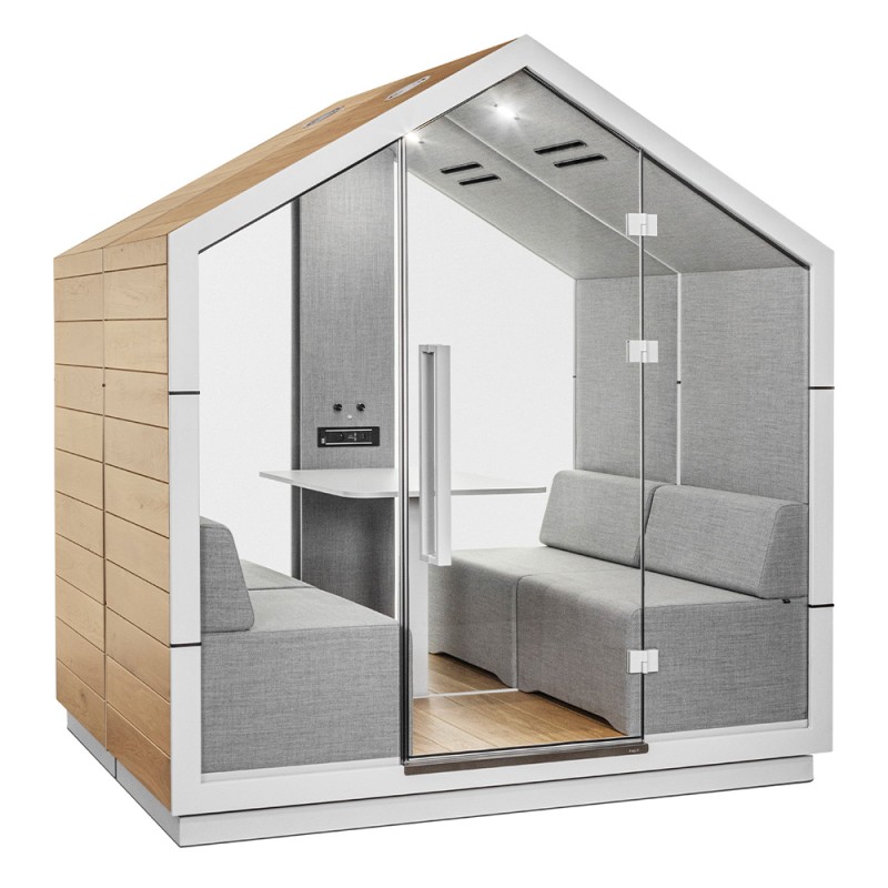The Bejot Treehouse TH-4-G2 is a four-person acoustic booth designed for contemporary office environments. This model offers a spacious and quiet area for meetings, collaborative work, or simply a secluded space for focused tasks without the distractions of a busy office.