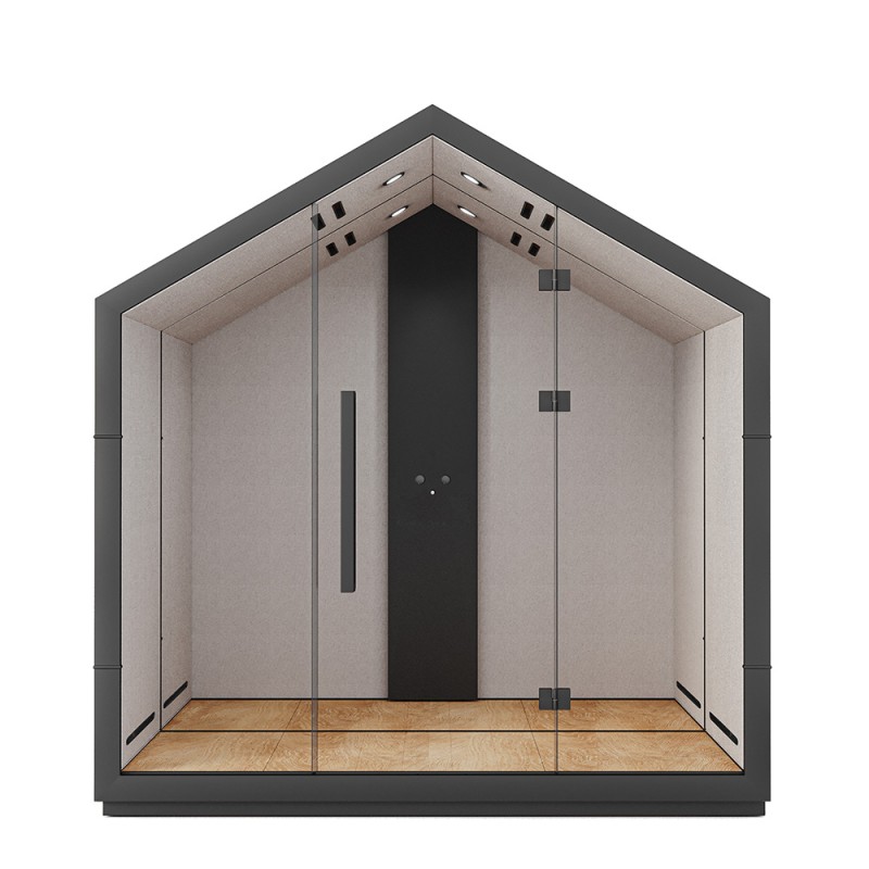 The Bejot Treehouse TH-4E-G1 is an expansive four-person acoustic booth designed to provide a substantial, private space within modern office environments. This model is suitable for larger meetings, collaborative projects, or as a quiet retreat for focused group tasks.