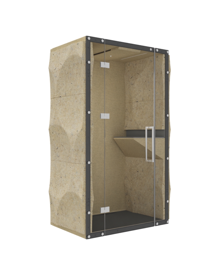 Arranging the available workspace in the right way by providing employees with space for individual heads-down work and conversations makes the workplace much more employee-friendly and boosts creativity. Such arrangements are possible thanks to open acoustic pods — VANK’s mobile rooms for 2 or 4. This version does not have a door — it features a plain upholstered back wall. Thanks to the special design and the use of sound-absorbing materials, the pods effectively block outside noise. ELLIPSE panels with their three-dimensional structure act as diffusers to break up sound waves, bringing well-being to the office. They can be made of a biocomposite or non-woven rPET — grey or upholstered. The pods come with LED ceiling lighting with a switch and a connection panel. Acoustic pods will work well not only in office environments but also at event venues, in hotels, in public office buildings, and at airports.