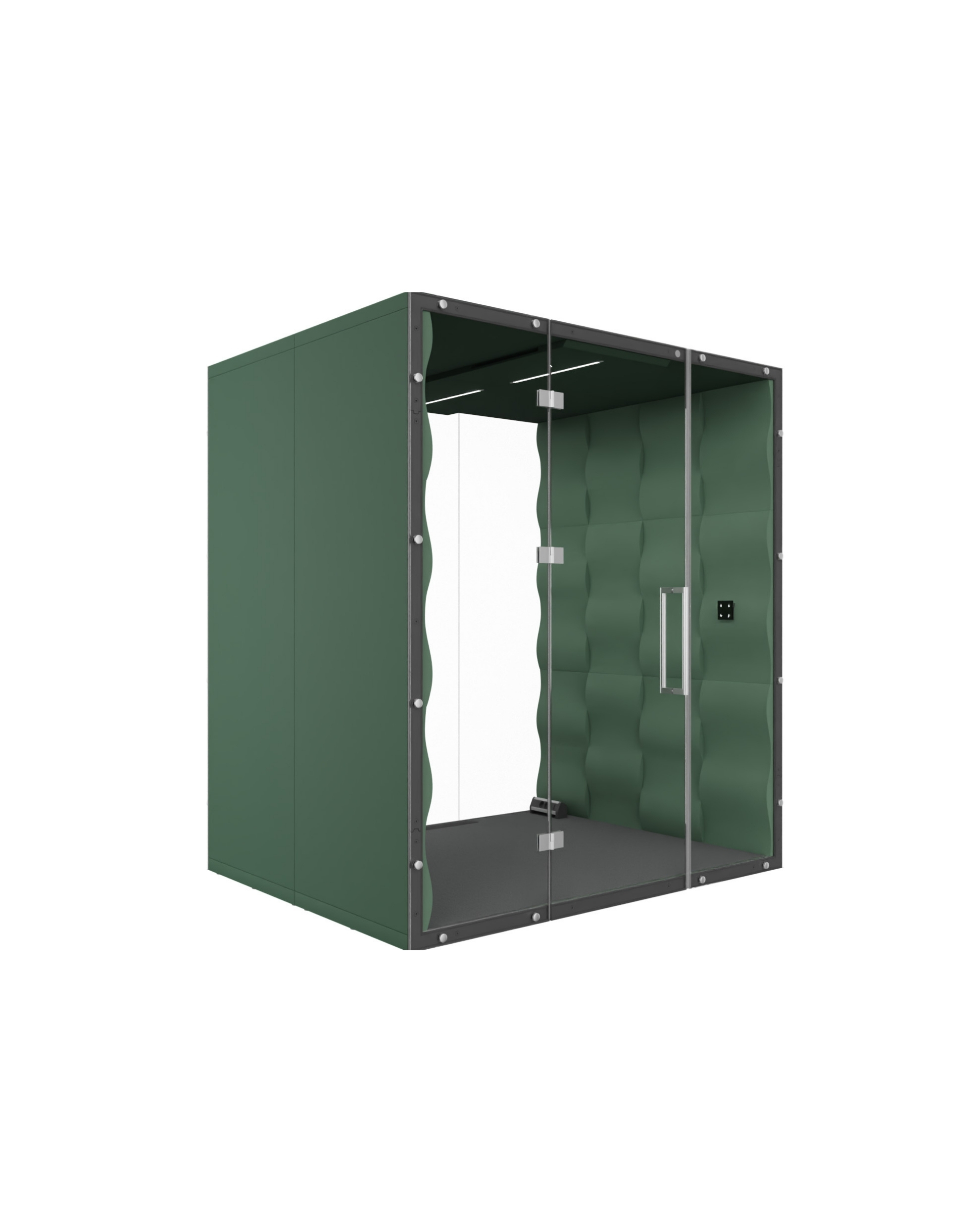 Arranging the available workspace in the right way by providing employees with space for individual work, video conferencing, meetings, and brainstorming makes the workplace much more employee-friendly and boosts creativity. Such arrangements are possible thanks to acoustic pods — VANK’s mobile rooms designed for 2/3, 4, and 6. Thanks to the special design and the use of sound-absorbing materials, the pods effectively block outside noise and suppress the sound generated inside. WAVE panels with their three-dimensional structure act as diffusers to break up sound waves, bringing well-being to the office. They can be made of a biocomposite or non-woven rPET — grey or upholstered. The pods feature a safety glass door and come with connection panels, a ventilation system, energy-efficient LED ceiling lighting, a sound system, a TV screen mount, and a control panel which measures: lighting intensity, air purity, and noise levels. The pod is also available in a mobile version — on wheels. Acoustic pods will work well not only in office environments but also at event venues, in hotels, in public office buildings, and at airports.