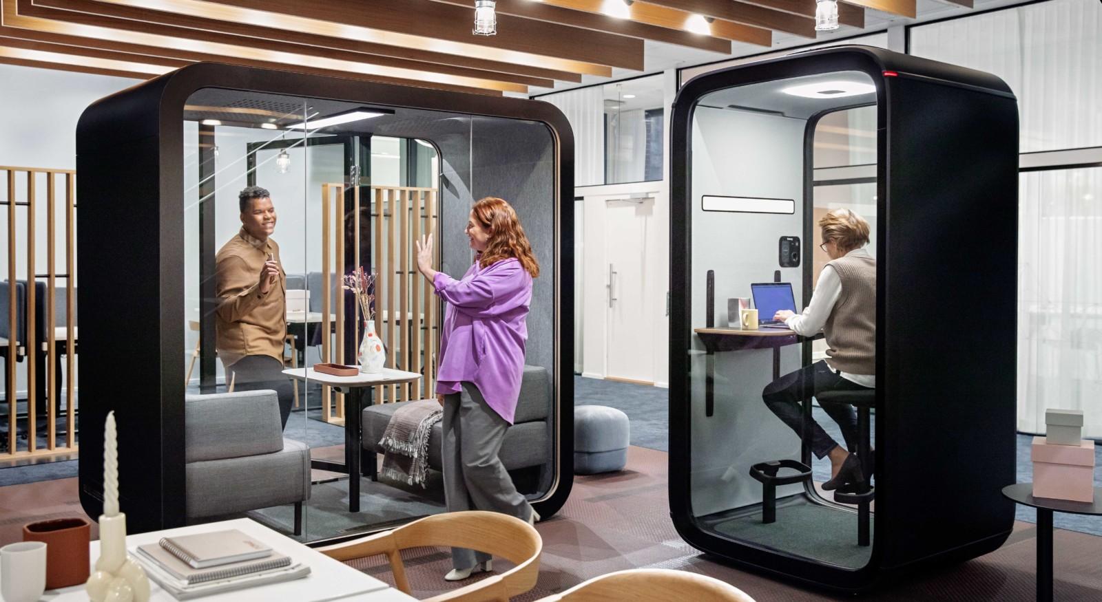 Интервью и общение тет-а-тет, встречи и командные мозговые штурмы, индивидуальная целенаправленная работа или отдых в тишине среди суеты рабочего дня – всё это будет проходить максимально комфортно и эффективно в современных технологичных акустических кабинах.